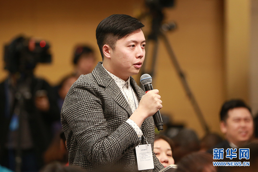 3月11日,十二屆全國人大五次會議新聞中心舉行記者會,邀請科技部部長萬鋼、秘書長徐建培就“2016年創(chuàng)新驅動發(fā)展戰(zhàn)略實施進展成效和2017年重點工作”的相關問題回答中外記者的提問。圖為臺灣旺旺中時媒體集團旺報記者提問。新華網/中國政府網 王健 攝