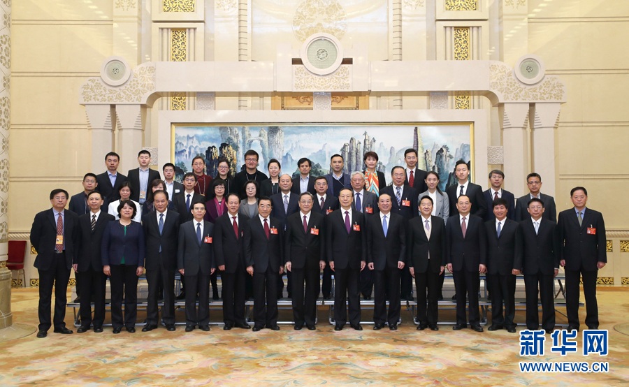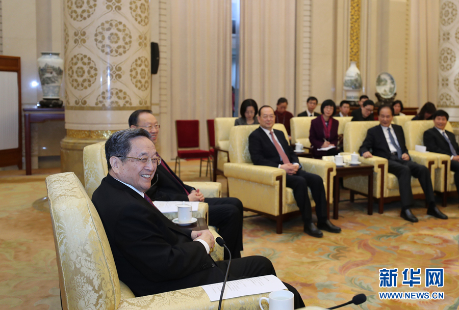 俞正聲看望參加全國政協(xié)十二屆五次會議報道的新聞工作者