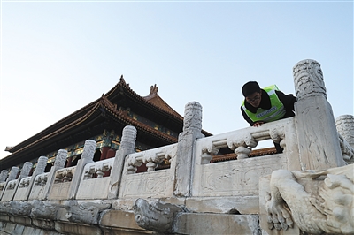 單霽翔表示,隨著故宮開放面積不斷擴(kuò)大,清場人員也不斷增加。如今,每天700余名工作人員同時(shí)開始檢查,涵蓋故宮開放區(qū)域的每個(gè)角落。包括室外所有外露文物(如殿外銅缸)、附屬設(shè)施、屋脊門廊等,室內(nèi)的所有文物、展室角落、展柜上下等。