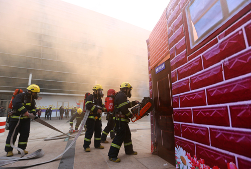 消防人員參加天津市和平區(qū)舉行的反恐應急綜合演練