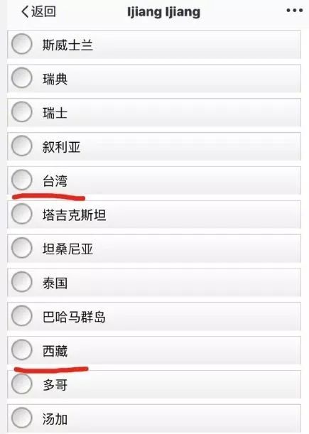 當(dāng)他們?cè)诨顒?dòng)的頁面上填寫信息時(shí),選擇“國(guó)家”的列表里,竟赫然出現(xiàn)香港、澳門、臺(tái)灣以及西藏的選項(xiàng)。