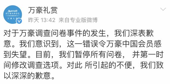 失望?不便?萬豪這樣的道歉和回應(yīng)沒有絲毫誠(chéng)意!
