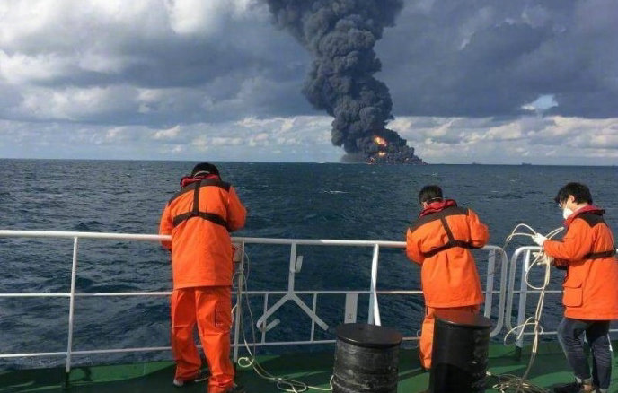 撞船事故發(fā)生以后,裝載了10多萬噸凝析油的“桑吉”號油輪發(fā)生劇烈燃燒,瞬間化為一片火海。中國海上搜救中心接到了求救信號。確定了撞船的位置后,中國派出包括專業(yè)救助船、海事執(zhí)法船奔赴事故現場進行援救,同時協(xié)調過往商船、以及周邊的數艘中國籍漁船趕往現場參與搜救。