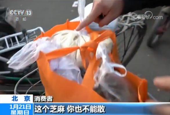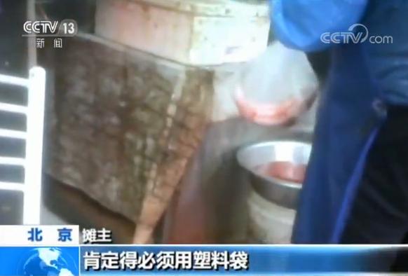 在北京街頭,一些早點攤前滿是塑料袋。