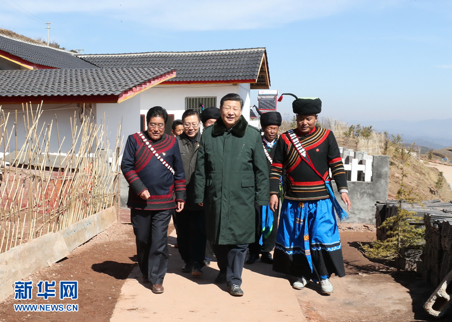 這是2月11日上午,習(xí)近平在涼山彝族自治州昭覺(jué)縣解放鄉(xiāng)火普村了解易地扶貧搬遷和彝家新寨建設(shè)情況。 新華社記者 鞠鵬 攝