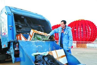 一天完成兩趟垃圾收運,李國棟原本該下班了??伤虝盒菹⒑?,又招呼班組的司機檢查車輛,準(zhǔn)備出車。原來,這個春節(jié)他們加了一個班——負(fù)責(zé)收運龍?zhí)稄R會的垃圾。
