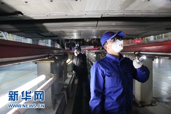 “春節(jié)期間的特點就是車多、故障多。這不,現(xiàn)在已經(jīng)拆了6個廁所了?!蓖蹊よ币贿叡P算著后續(xù)的工作安排一邊說,“今晚一共要檢修完7列10組車。這還不算太忙的,前一陣子最多的時候每天要修17、18組車呢!”記者觀察到,雖然當(dāng)晚檢修工作內(nèi)容龐大繁雜,但一切都在有條不紊地進(jìn)行著。