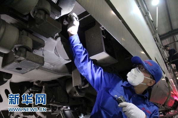 石家莊動車運(yùn)用所的檢修工正在作業(yè)。新華網(wǎng) 金佳緒 攝