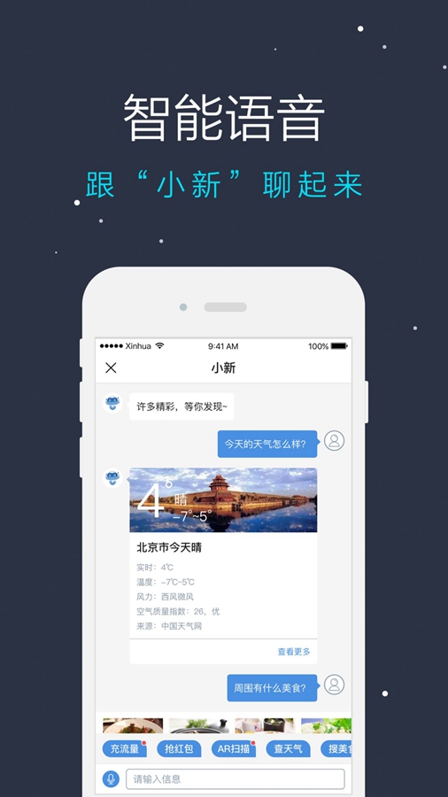 據(jù)悉,新華社客戶端還將進(jìn)一步向便民服務(wù)拓展,并接入智能語音交互,用戶可隨時(shí)語音呼叫“小新”,有問必答。