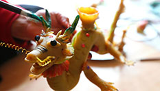 第一圖“吃元宵”,描繪了元宵佳節(jié)祖孫三代其樂(lè)融融吃元宵的傳統(tǒng)民俗生活場(chǎng)景;第二圖“賞花燈”,描繪了男女老幼賞燈彩的景象,畫面中有人在賞花燈,有人在猜燈謎,燈彩有亭臺(tái)樓閣燈、鯉魚燈、荷花燈、走馬燈、乞賜封燈,一輪圓月掩映其中更增添了節(jié)日之夜歡樂(lè)溫馨的氣氛;第三圖“舞龍舞獅”,描繪了元宵佳節(jié)耍龍燈、舞獅子的熱鬧場(chǎng)面。畫面前景描繪了兩頭活潑喜氣、憨態(tài)可掬的獅子,它們一頭歡躍、一頭直立,與后面舞動(dòng)的長(zhǎng)龍組成了一幅龍騰獅躍、歡快昂揚(yáng)的節(jié)慶畫面。