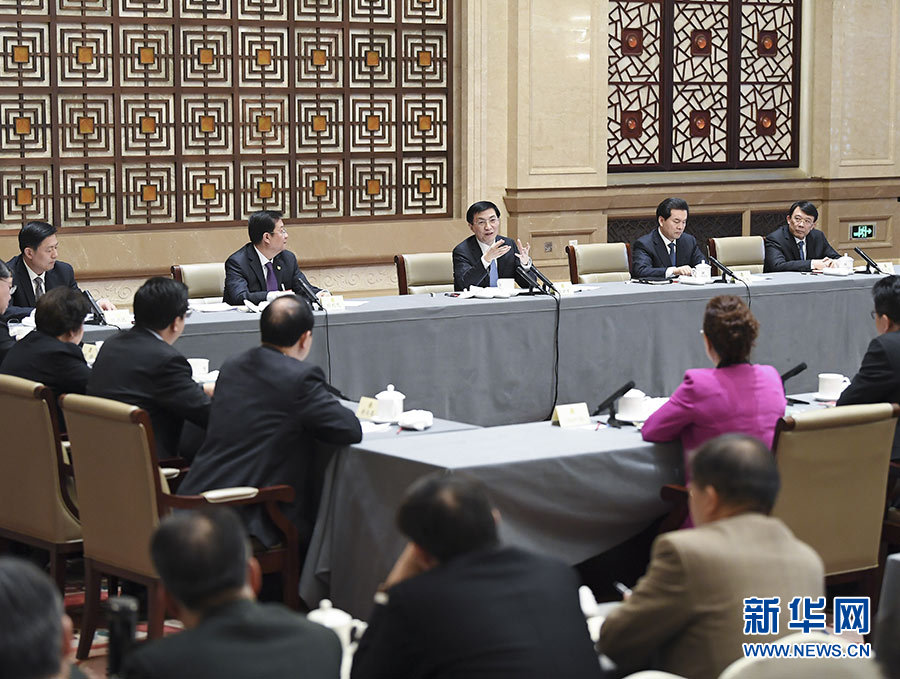 3月4日,中共中央政治局常委韓正看望出席全國政協(xié)十三屆一次會議的民革、民進(jìn)界委員并參加討論。 新華社記者 王曄 攝