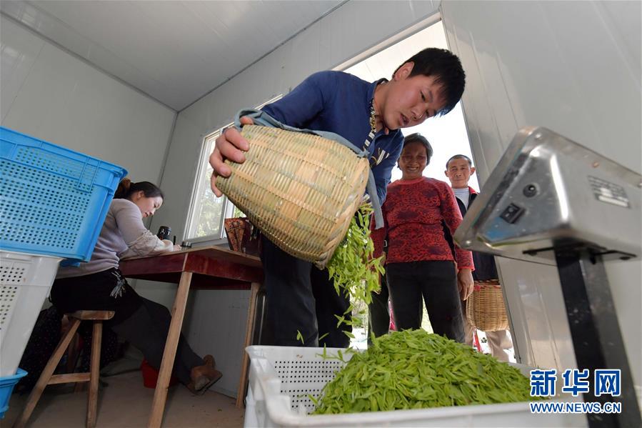 在江西省樂平市高家鎮(zhèn)朱家村高家白茶基地,工人在茶園里收購春茶,這里是江西“一村一名大學生”工程的教學實踐基地之一(3月28日攝)。新華社記者彭昭之攝