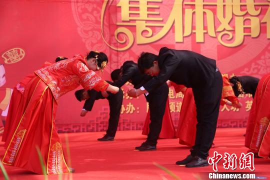 18對(duì)新人以“零彩禮”集體婚禮的形式步入幸福的婚姻殿堂,致敬青春?!√J柯柯 攝