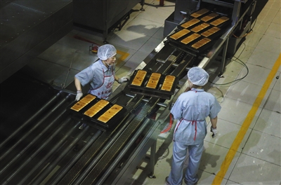門(mén)楣上,暗紅色的招牌上噴著鮮黃的大字——“百年義利”。這個(gè)隸屬于北京第一輕工食品集團(tuán)(簡(jiǎn)稱(chēng)“一輕”)的百年老店是一家國(guó)有企業(yè),自1951年在北京建廠(chǎng)至今已生存67年。