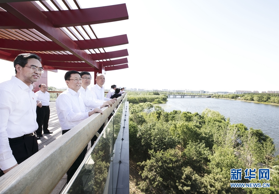 5月28日,中共中央政治局常委、國務院副總理韓正在北京市通州區(qū)調研北京城市副中心規(guī)劃建設工作。這是韓正在大運河森林公園察看大運河沿岸生態(tài)環(huán)境治理情況。新華社記者 王曄 攝