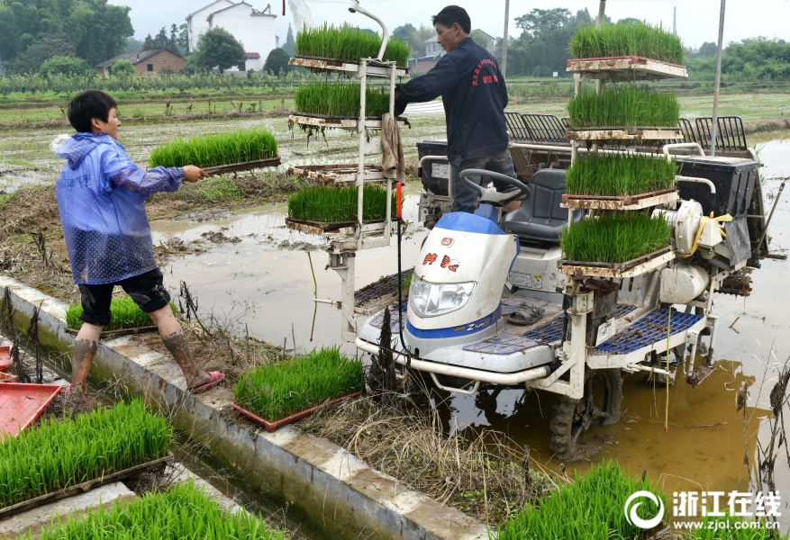 武義縣王宅鎮(zhèn)陶宅村種糧大戶方曉輝忙著插種單季稻。