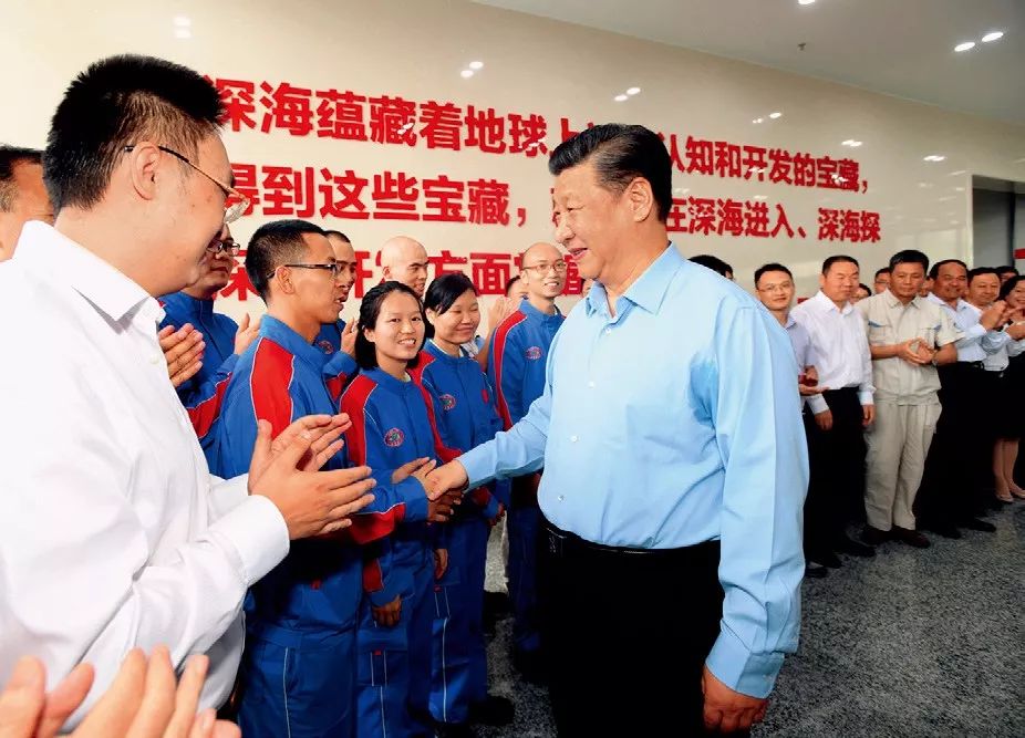 ▲ 4月12日,習近平總書記在位于三亞的中國科學院深??茖W與工程研究所,同“深海勇士”號載人潛水器設計師和深潛團隊親切交談 李學仁攝