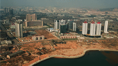 1996年青島還沒有五四廣場(新華社發(fā) 張巖攝),到了2018年,五四廣場則被高大時尚的建筑環(huán)繞(新華社記者郭緒雷攝)。