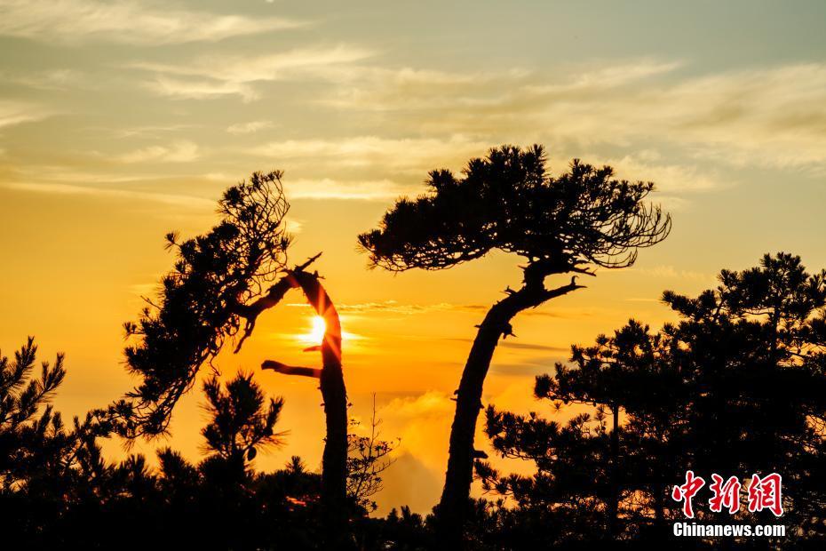 6月29日傍晚,安徽黃山風景區(qū)雨后出現(xiàn)云海和晚霞景觀,宛如壯麗畫卷。中新社發(fā) 方立華 攝