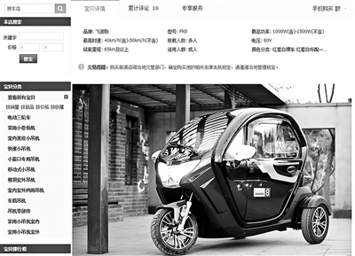 如淘寶上一家電動車銷售商家就直言標(biāo)注:“此車不能辦理牌照,也不需要駕照,請根據(jù)當(dāng)?shù)貙?shí)際政策購車,不能因上牌問題退貨?!?/p>