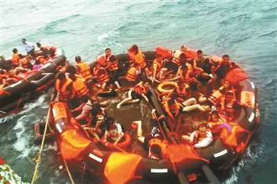 在“鳳凰號”下沉之前,陳林就跳下了水,他把救生筏解開,還救起了兩個孩子。