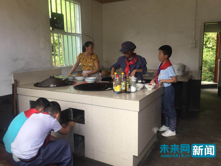 前來井岡山茅坪鄉(xiāng)壩上村體驗(yàn)“紅軍的一天”教育的小學(xué)生自己動(dòng)手做飯。未來網(wǎng)記者 楊佩穎 攝