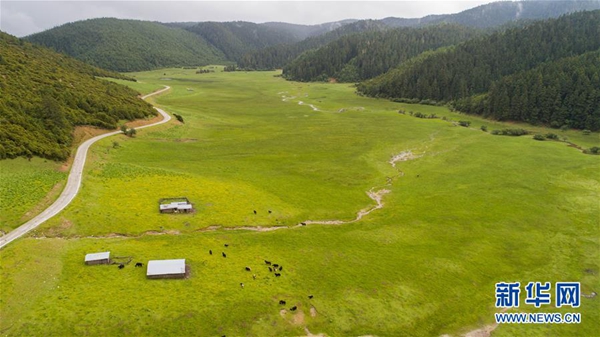 普達(dá)措國家公園彌里塘片區(qū)風(fēng)景(7月18日無人機(jī)拍攝)。 新華社記者 胡超 攝