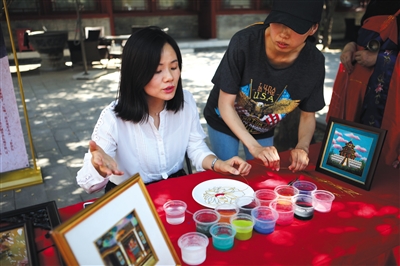 今年6月29日,西城區(qū)非物質文化遺產保護中心,非遺傳承志愿者為市民介紹彩砂工藝。當天,西城區(qū)啟動非遺項目傳承志愿者招募活動。活動共設5個項目,包括木板年畫、京作核雕等。資料圖片/新京報記者 王嘉寧 實習生 梁思成 攝