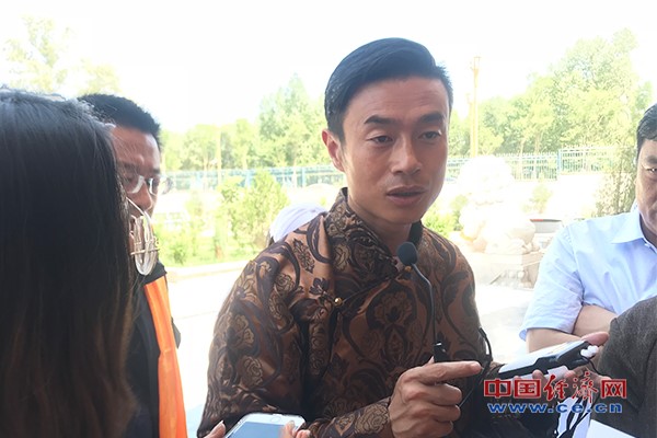 圖為熱貢龍樹畫院總經(jīng)理完德介紹畫院情況 經(jīng)濟(jì)日報(bào)-中國經(jīng)濟(jì)網(wǎng)記者 秦爽/攝