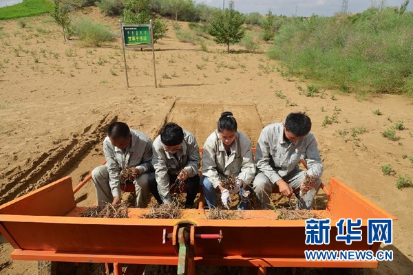 張吉樹介紹說,甘草適合在沙漠里生長,固氮量大,改良沙土的效果很明顯,讓甘草躺著長,可將一棵甘草的治沙面積由0.1平方米擴大到1平方米,這項技術已推廣到其他沙區(qū),治理面積達220萬畝。