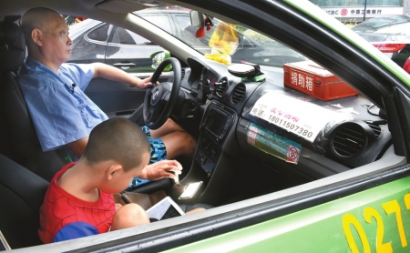 從2歲多到6歲,四年時(shí)間,小偉把出租車當(dāng)成“家”,無聊時(shí)玩平板電腦,累了就靠在座椅上睡。