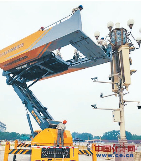 華燈車(chē)在檢修和清洗華燈。經(jīng)濟(jì)日?qǐng)?bào)-中國(guó)經(jīng)濟(jì)網(wǎng)記者 常 理攝