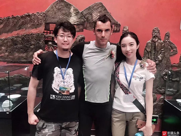從左至右,央視導(dǎo)演劉曉,極限挑戰(zhàn)者讓·瑪利,央視導(dǎo)演劉千僡。圖 新疆經(jīng)濟報新媒體中心記者邢靚