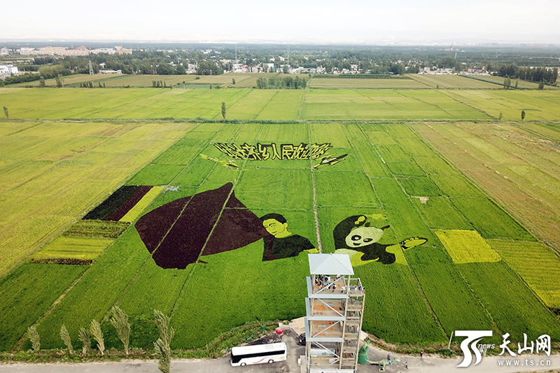 田里種出畫,這不是3D電影特效!這是新疆伊犁哈薩克自治州察布查爾錫伯自治縣納達齊牛錄鄉(xiāng)的3D稻田畫。