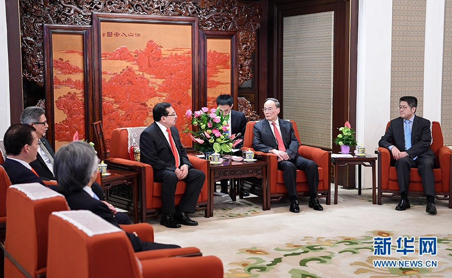 8月21日,國(guó)家副主席王岐山在北京中南海會(huì)見薩爾瓦多代理總統(tǒng)職務(wù)第一指定人岡薩雷斯、總統(tǒng)法律秘書阿爾瓦拉多、外長(zhǎng)卡斯塔內(nèi)達(dá)。 新華社記者 張領(lǐng) 攝