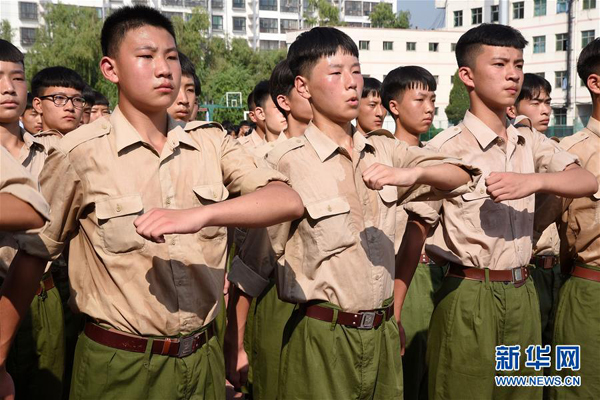 8月28日,新生在湖北省襄陽(yáng)市??悼h第一中學(xué)參加軍訓(xùn)。新華社發(fā)(楊韜 攝)