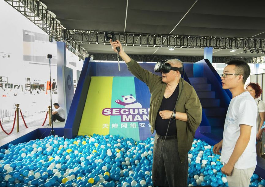 VR與滑梯、海洋球池結(jié)合,形成“連環(huán)暈眩術(shù)”,市民體驗(yàn)滑梯后,再戴上VR眼鏡,在“暈?!焙蠡卮鹁W(wǎng)絡(luò)安全知識(shí)問題;