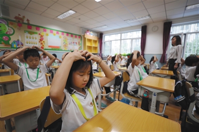 9月19日,朝陽區(qū)實(shí)驗(yàn)小學(xué)(三里屯幸福校區(qū)北區(qū)),學(xué)生們正在做新眼保健操。 新京報(bào)記者 王飛 攝