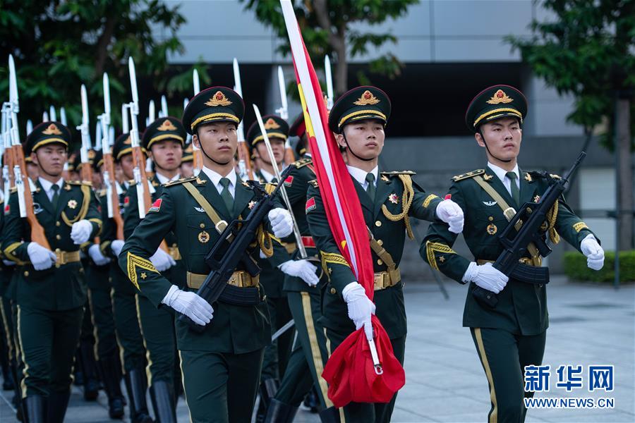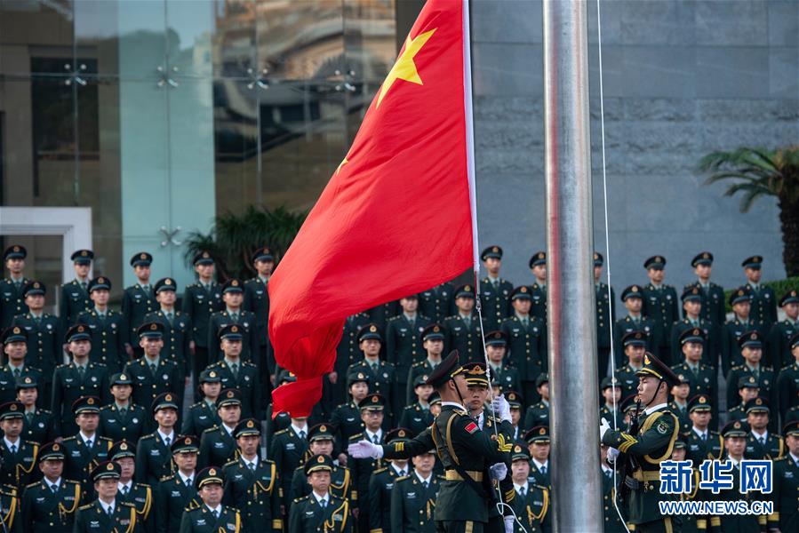 10月1日,中國(guó)人民解放軍駐澳門(mén)部隊(duì)在新口岸營(yíng)區(qū)舉行升國(guó)旗儀式,慶祝中華人民共和國(guó)成立69周年。 新華社記者 張金加 攝