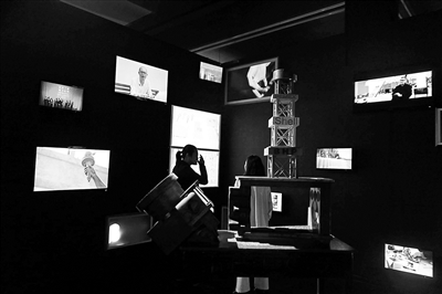 黑色的背景營造出“時光隧道”的感覺、記錄年代關(guān)鍵詞的40個燈箱在“隧道”一側(cè)亮起,伴隨著參觀者的腳步,從1977年緩步走到2018年?!八淼馈钡牧硪粋?cè)則是與這些關(guān)鍵詞相關(guān)的藝術(shù)發(fā)展進(jìn)程中的重要作品。而在展廳的中間,還陳列了一些珍貴的老物件。這是正在798國際藝術(shù)交流中心展廳舉辦的“行進(jìn)中的歷史”,用年代記錄了藝術(shù)領(lǐng)域在改革開放以來的發(fā)展進(jìn)程。