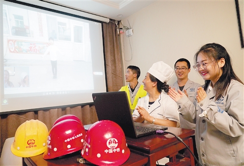 10月4日,正在建設(shè)中的北京地鐵19號線牡丹園車站,中鐵七局職工通過視頻投影設(shè)備和親人連線交流。國慶假期,許多建設(shè)者堅守崗位無法與家人團聚,項目部為他們開通親情連線,利用微信、在線視頻等多種通訊工具讓他們和遠在外地的親人視頻通話。經(jīng)濟日報記者 趙 晶攝