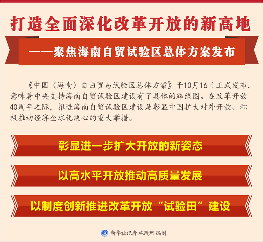 新華社北京10月16日電? 題:打造全面深化改革開放的新高地——聚焦海南自貿(mào)試驗(yàn)區(qū)總體方案發(fā)布