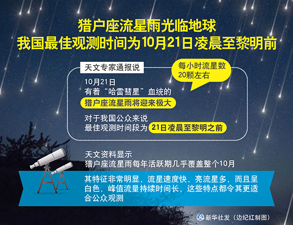 圖表:獵戶座流星雨光臨地球 我國最佳觀測時間為10月21日凌晨至黎明前 新華社發(fā) 邊紀紅 制圖
