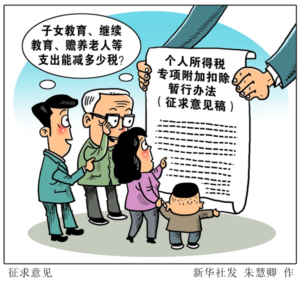 新華社北京10月20日電(記者 韓潔、劉紅霞)新一輪個人所得稅改革的一大亮點——專項附加扣除政策20日揭開面紗。當(dāng)天起,財政部、國家稅務(wù)總局會同有關(guān)部門起草的《個人所得稅專項附加扣除暫行辦法(征求意見稿)》在兩部門官網(wǎng)開始為期兩周的向全社會公開征求意見。