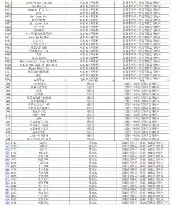附件中共列出6609部要求下架的音樂(lè)電視作品。記者發(fā)現(xiàn),陳奕迅的《十年》《圣誕結(jié)》、信樂(lè)團(tuán)的《死了都要愛(ài)》等大家耳熟能詳、幾乎是KTV必點(diǎn)曲目,也都在“下架”之列。
