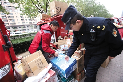 今年“雙十一”旺季壓力主要集中在收派環(huán)節(jié)。據(jù)市郵政管理局相關(guān)負(fù)責(zé)人介紹,在北京市“疏解整治促提升”和“減量發(fā)展”大背景下,北京已由快遞輸出城市轉(zhuǎn)變?yōu)檩斎氤鞘?,今年前九個(gè)月,進(jìn)京量比出京量多出1.3億件,特別是中心城區(qū)的投遞業(yè)務(wù)占比持續(xù)上升,占全市比重的71%。隨著“雙十一”業(yè)務(wù)高峰來臨,將進(jìn)一步增大北京市快遞末端的收派壓力。