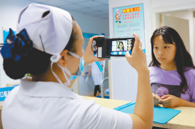 四川省華鎣市引進被稱為醫(yī)?!半娮泳臁钡闹悄鼙O(jiān)管系統(tǒng)。通過該系統(tǒng),醫(yī)保經(jīng)辦機構(gòu)可在線實施遠程查房、調(diào)閱病歷、醫(yī)保號查詢等操作,變原來的事后審查為事中監(jiān)管和審查,有效杜絕騙保行為。圖為華鎣市人民醫(yī)院一名護士利用醫(yī)保智能監(jiān)管系統(tǒng)手持移動端對患者進行“臉譜”采集。周松林攝