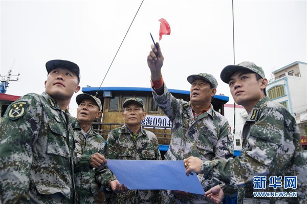 海南省瓊海市潭門鎮(zhèn),東面環(huán)海,南接博鰲,這里是王書茂的家鄉(xiāng)。史料記載,潭門漁民自秦代開始便世世代代在南海打魚,稱南海為“祖宗?!?。作為潭門海上民兵連副連長的王書茂,每年有一多半時間在海上度過,由于熟悉當(dāng)?shù)厣缜槊袂?,他多次?zhí)行急難險重任務(wù),每次都沖鋒在前,出色完成任務(wù)。44年的漁業(yè)生涯中,共組織漁民抵御臺風(fēng)120多場,對600多位漁民實施了救援,還參加了多處南沙島礁的建設(shè)?!氨M管危險,但我們從來沒有放棄過守護和耕耘南海。”王書茂說。