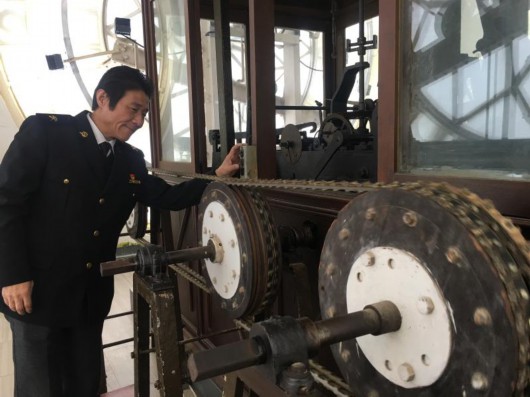 1991年之后的魏云寺極少出上海,唯一一次遠行發(fā)生在2009年,當年他被評為先進,單位獎勵他去西安旅游。他左思右想還是決定放棄,直到他的師傅即第三任守鐘人聽說后主動頂班,魏云寺才得以成行。數(shù)年前,魏云寺的父親過世,喪事還沒安排妥當,他又趕去鐘樓給大鐘上發(fā)條。有沒有怨言呢?魏云寺并未正面回答記者。他只提及一件事——2017年底,適逢海關大樓90歲生日,他接待了來自外灘街道的數(shù)十名居民。這些居民聽了數(shù)十年鐘聲,自家陽臺距離大鐘最近的甚至不足百米,卻第一次踏入大鐘“心臟”,一睹發(fā)條如何運作、鐘聲如何響起。其中有位居民對魏云寺說:“海關鐘聲伴我入眠,鐘聲不響我睡不著?!?/p>