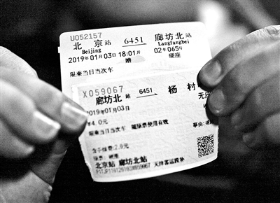 秘京春告訴北京青年報記者,6451次最初是給鐵路職工上下班的通勤車,使用最簡易的車廂,鐵路職工免費乘坐,同時面向社會開放,由于票價低廉,非常貼近普通百姓。但隨著時代發(fā)展,很多老綠皮車線路停運。為留作紀念,秘京春購買了6451/6452次最后一趟的全程車票,單程票價6.5元。但他并不打算坐滿全程,而是到廊坊北下車,再轉乘別的列車返京,用他的話說是“買長坐短”。